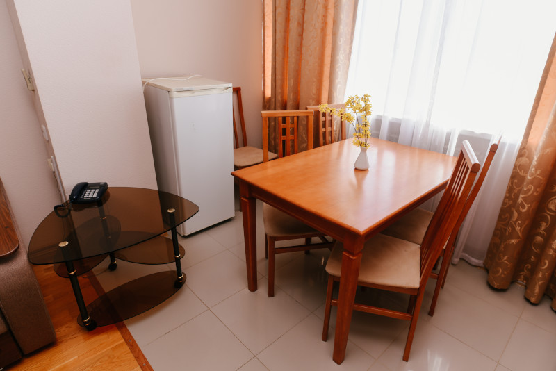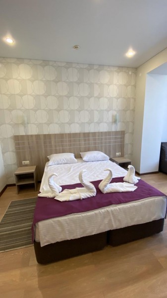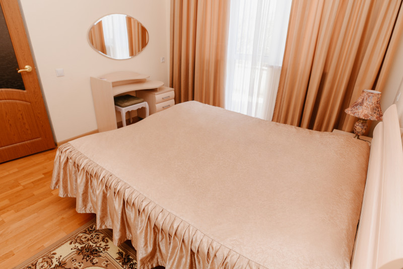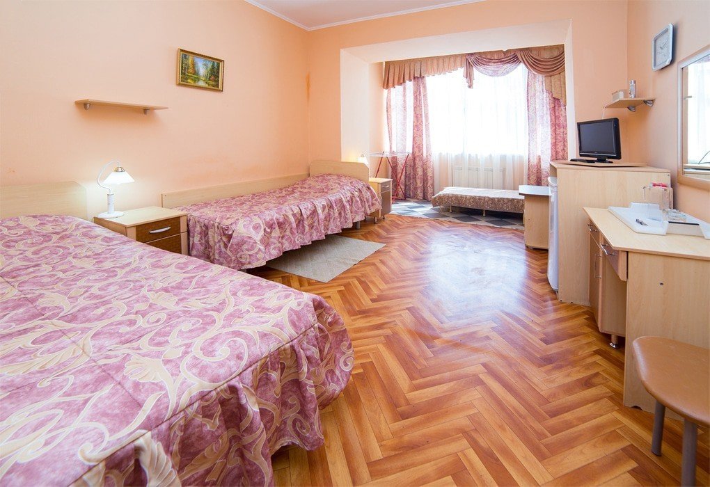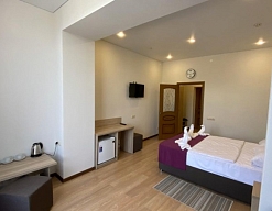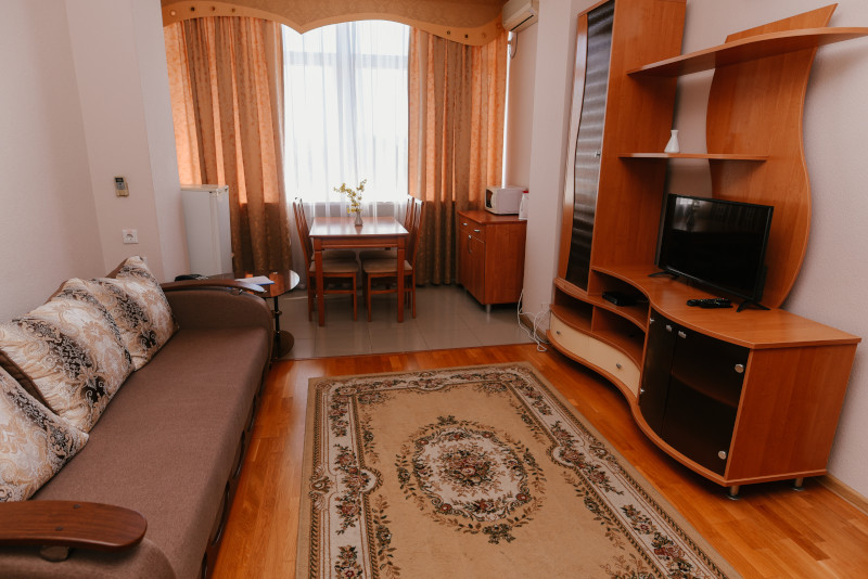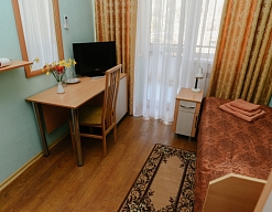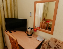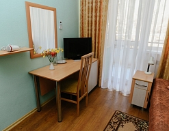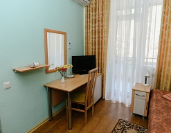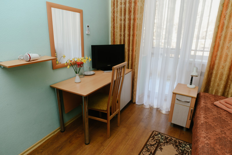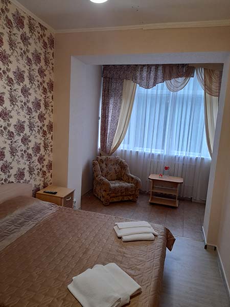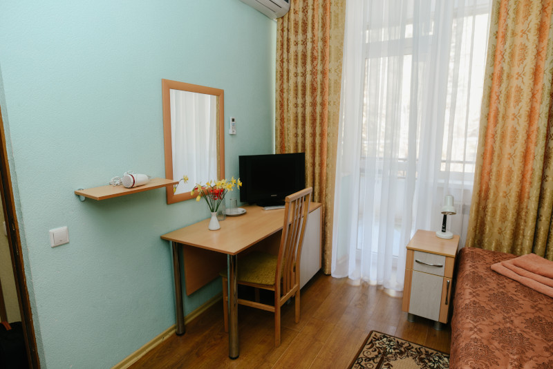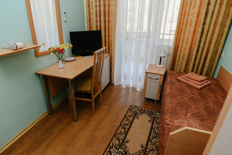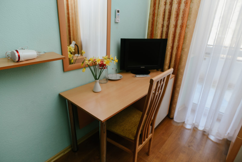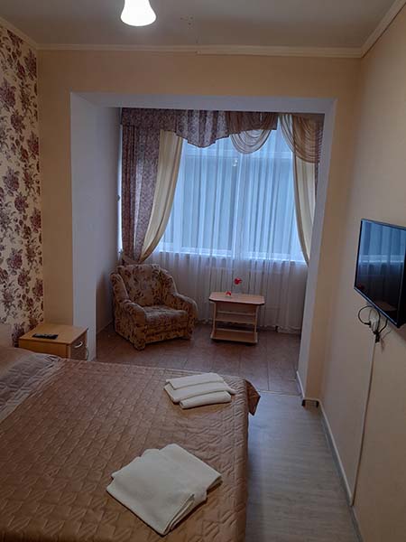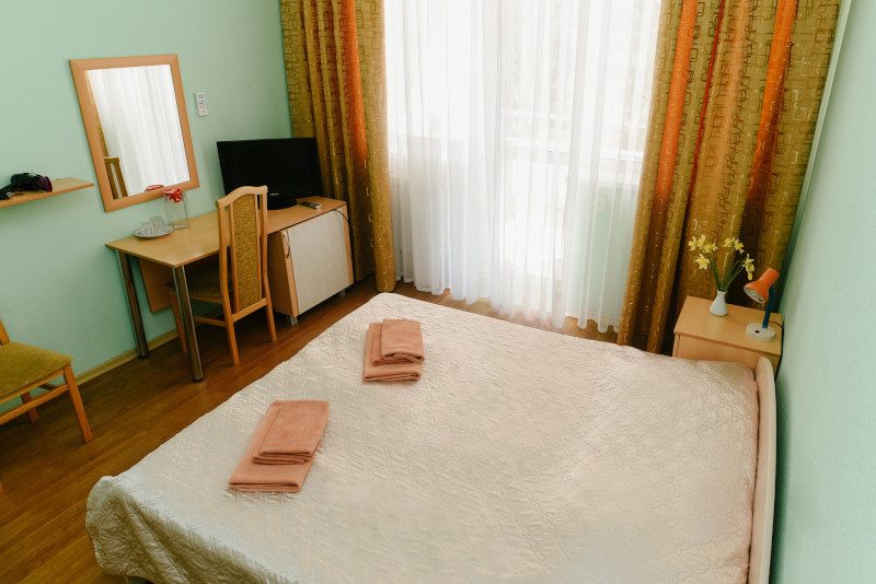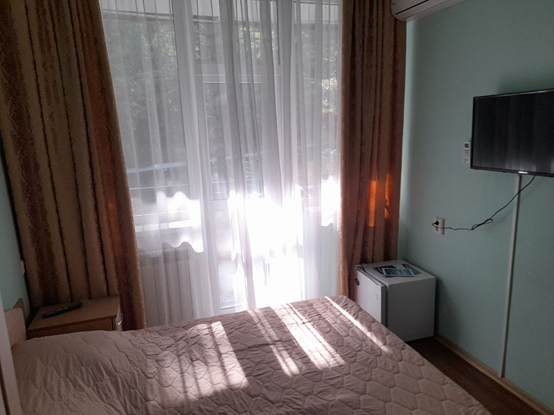 В санатории Архипо-осиповка мы снимали двухместный стандарт, изначально просили пониже, дали на 3 этаже. В принципе, неплохо. Номер не очень большой, но все необходимое есть: двуспальная кровать, набор мебели, телевизор, маленький холодильник, даже чайник электрический.