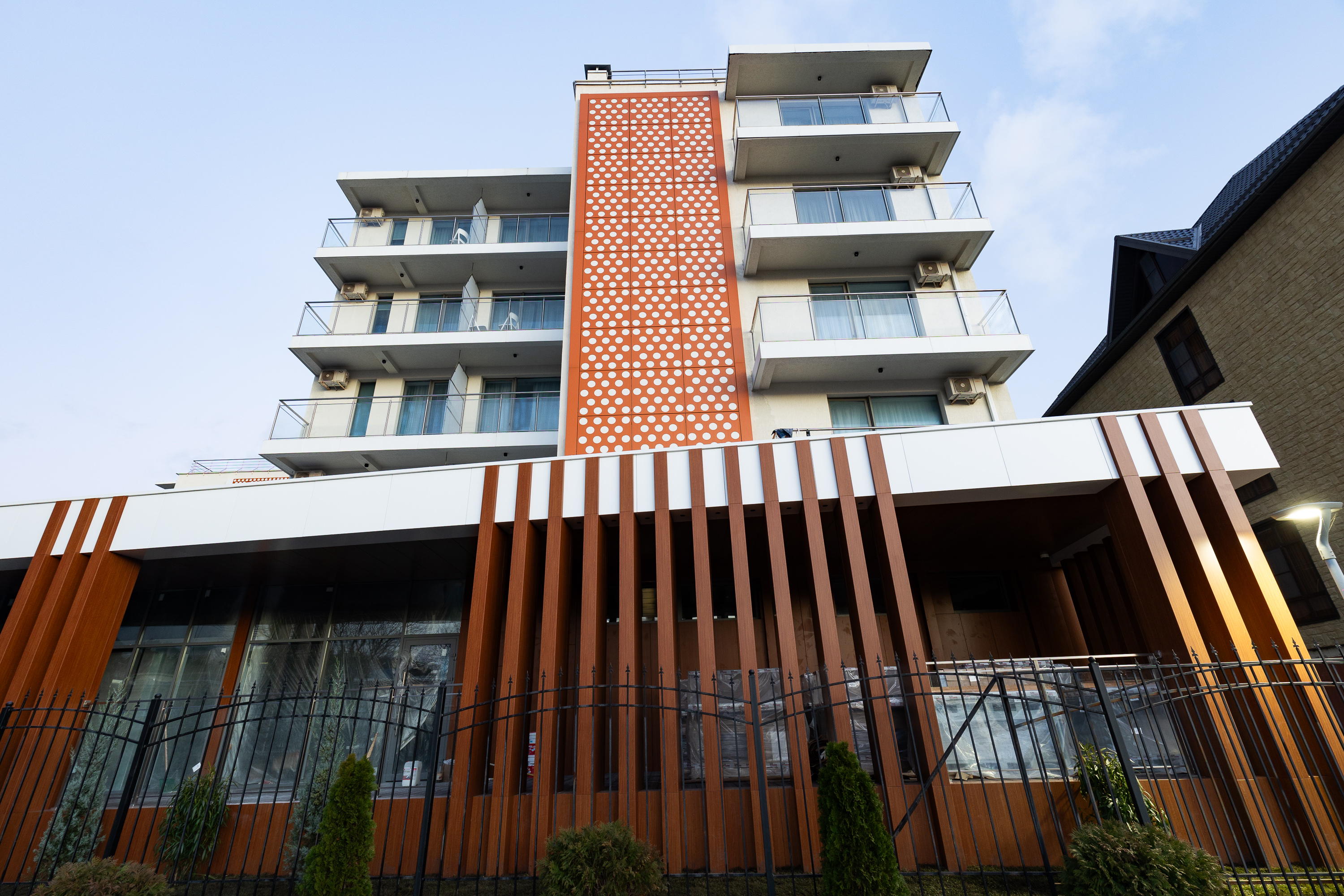 Отель находится на собственной благоустроенной огороженной озелененной территории. Здание отеля – 6-этажное, рассчитанное на проживание до 200 человек.